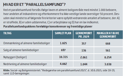 Hvis forarbejderne anses som belastende nok, kan der ikke være meget tvivl om at man stilles ringere ved at blive kategoriseret som et ”parallelsamfund”, da andelen af almene familieboliger skal sættes ned til 40%.