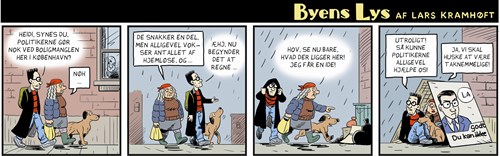 Kommunalvalget er lige om døren, og mange politikere, særligt i København og Aarhus, har talt om manglen på boliger til en fair pris, men meget lidt er sket i praksis. Det frustrerer mange, herunder tegner Lars Kramhøft, der står bag tegneseriestriben Byens Lys, der dagligt bringes i dagbladet Information og netop er udkommet i to bøger.