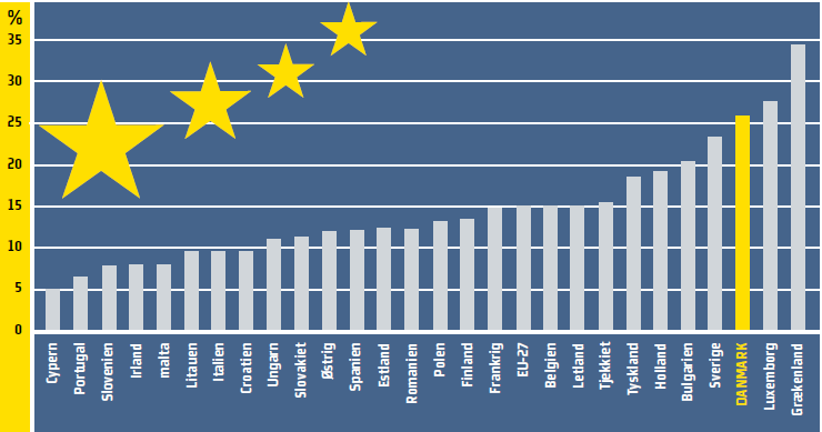 Danmark ligger i EU-top, men ikke på den gode måde.